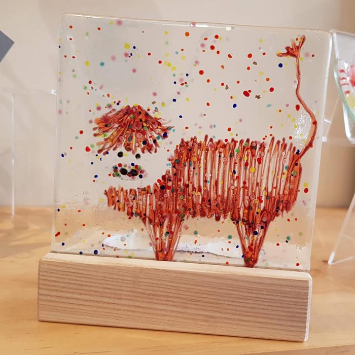 Fused Glass Tea Light Holder with Highland Cow