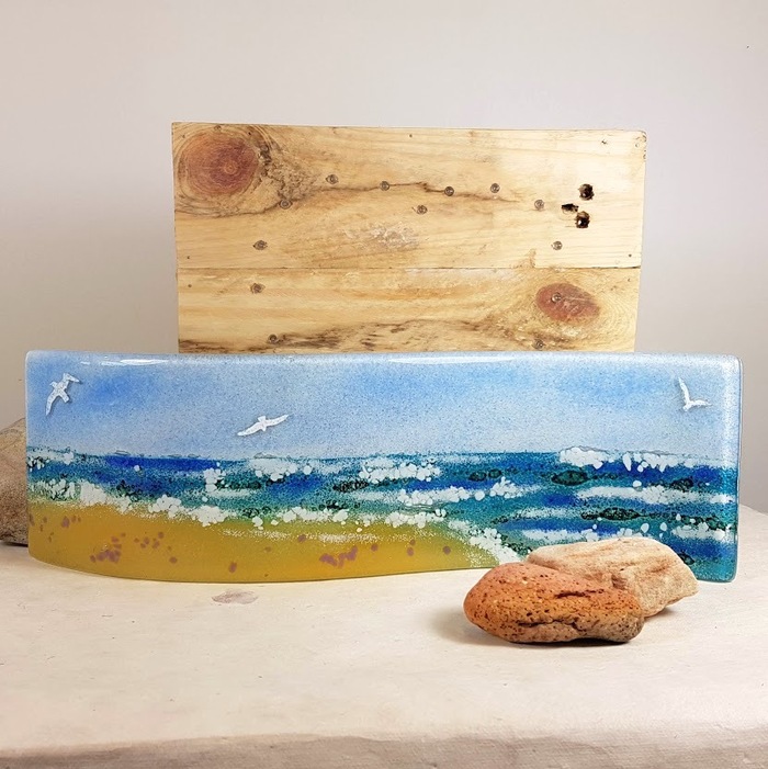 Published June 29, 2020. Size: 700 × 701 in FUSED GLASS SEASCAPE AND GULLS PANEL