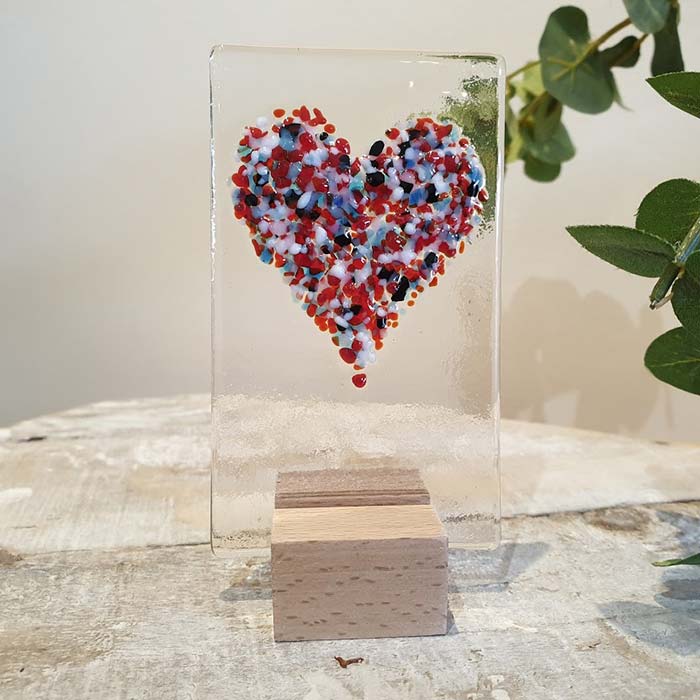 Small Glass Heart Panel Multicoloured