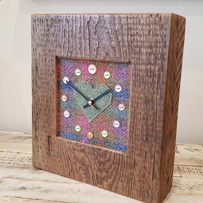 Mixed Harris Tweed Sage Coral Heart Face Clock