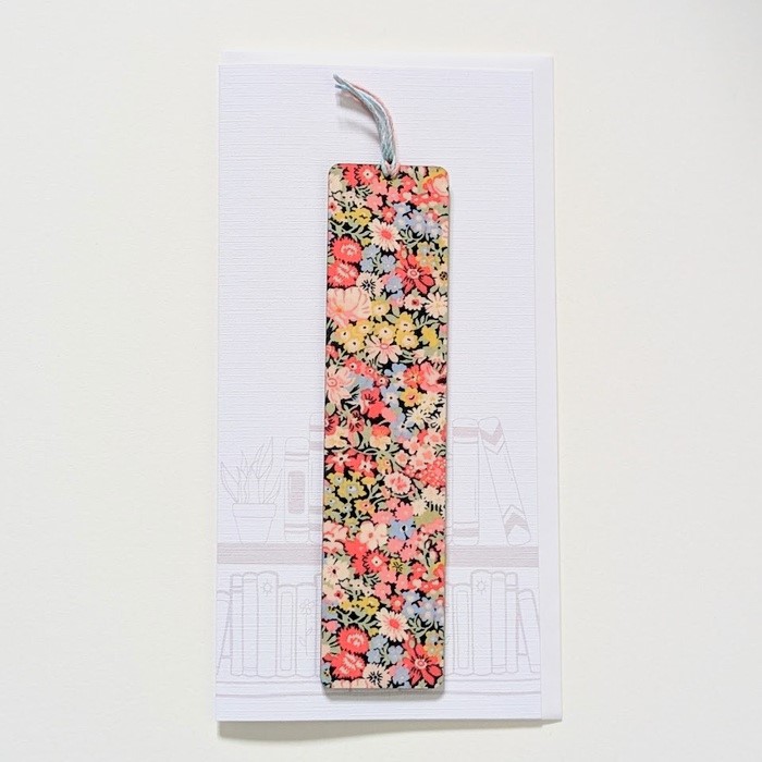 This  card features a detachable, wooden, bookmark which is laminated with the finest,cotton Liberty print.  A thoughtful keepsake card to send to all your bookworm friends and family, suitable for any occasion.  Finished with a coloured string detail.
