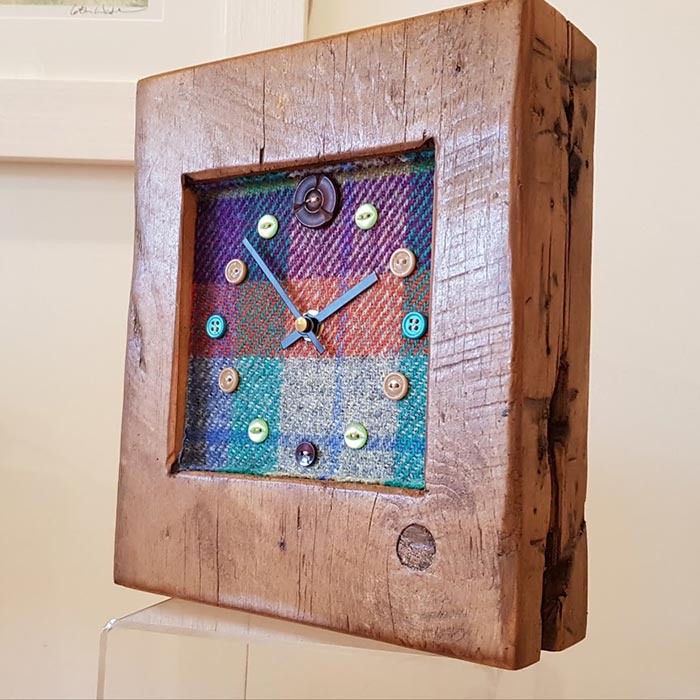 Rustic Wooden Clock With Harris Tweed Face